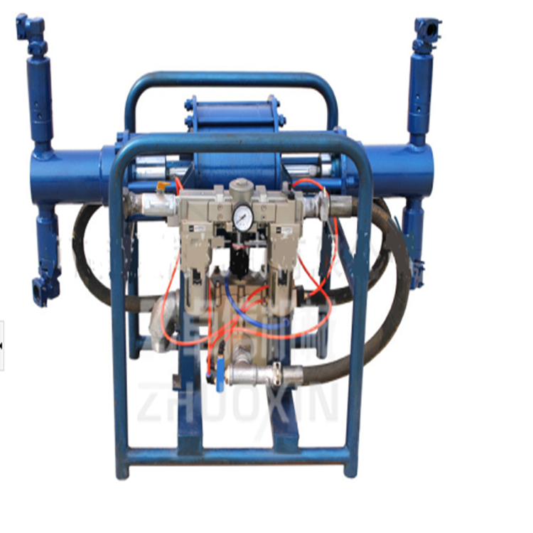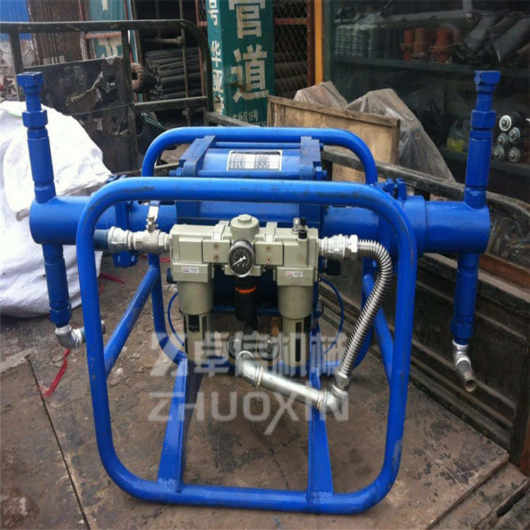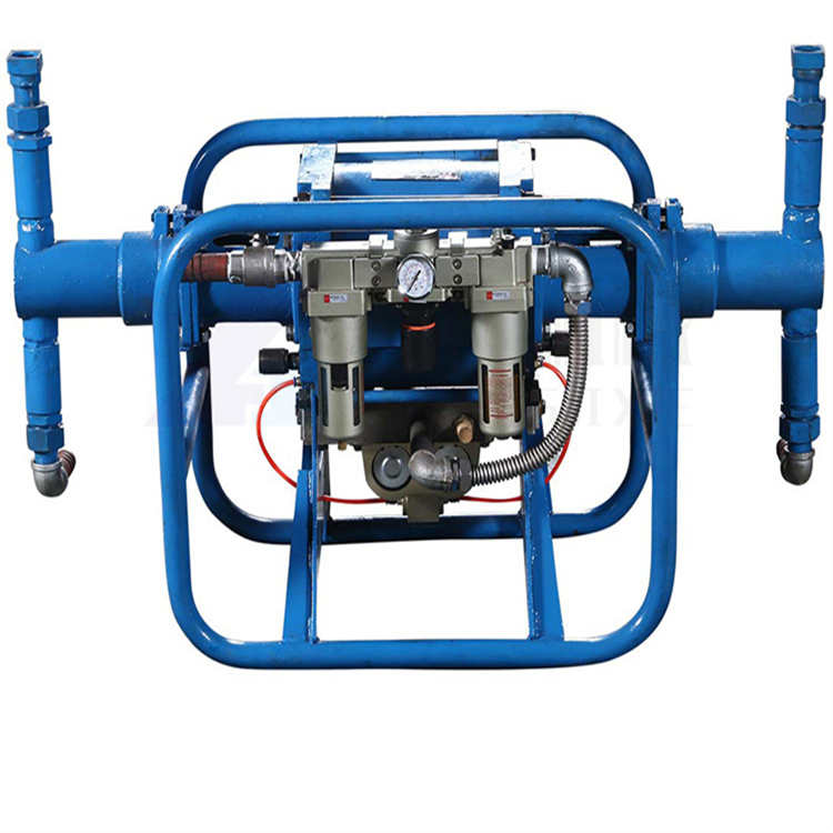 采用氣壓傳動,具有體積小、重量輕的特點,注漿壓力與流量成反比的軟特性注漿液輸送功能,工作效率高。淺層注漿時,能有效地起到保護巖層結構不變的作用。可進行漿比為1:1的雙液注漿,更換不同直徑的柱塞,能實現(xiàn)其他比例的雙液注漿。