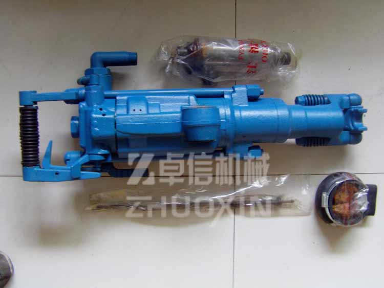 - 我公司生產的7665MZ雙級氣腿式鑿巖機系列在吸收世界先進鉆機生產技術的基礎上,我們不斷改進鉆機性能、提高煤碳支護作業效率、保證支護作業安全。7665MZ雙級氣腿式鑿巖機具有安全防爆,結構合理、操作方便、重量輕、省力等優點,故障率極低,行銷全國十幾年。我公司生產的鑿巖機主要 有氣腿式鑿巖機,手持式鑿巖機,內燃鑿巖機,電動鑿巖機7665M和7665MZ(正轉)氣腿鑿巖機系列為雙級氣腿鑿巖機,用于巷道施工,既可鉆鑿迎頭炮孔,又可打出與頂板垂直的錨桿孔,7665MZ(正轉)氣腿鑿巖機型還可用來攪拌和初裝樹脂錨桿。7665MZ系列雙級氣腿式鑿巖機的特色。1、整機高度矮、申縮行程大。2、創新開發了一種正轉鑿巖機。3、可配置B19釬桿和ф28釬頭,能滿足推廣“三小”新技術的需求。4、綜合鑿巖性能好,不僅適合f>8的中硬巖石鑿孔,也適合f≤6的巖石鑿孔,既可適用于巖石巷道,也可用于采準巷道。5、結構簡單實用,便于維護,且價位低。7665MZ鑿巖機技術規格:鑿巖機型號 7665M 7665MZ旋轉方向 反轉 正轉重量kg 25.5 25.5缸徑mm 76 76行程mm 70 70沖擊頻率Hz ≥34 ≥34沖擊能J ≥62 ≥62耗氣量L/S ≤56 ≤56氣缸內徑mm 25 25水管內徑mm 13 13釬尾套mm (B19×108) B22×108