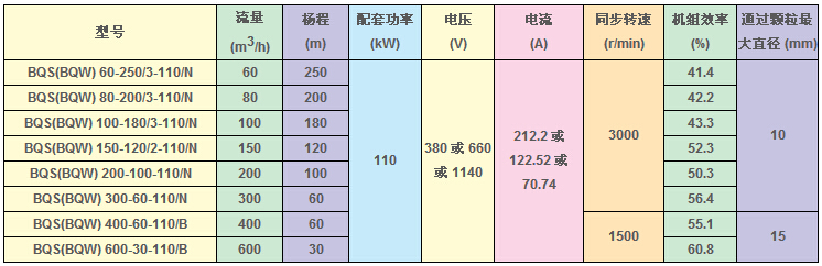 BQS(W)礦用隔爆型排污排沙潛水電泵技術(shù)參數(shù):