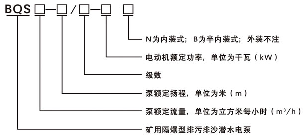 BQS(W)礦用隔爆型排污排沙潛水電泵產品型號介紹: