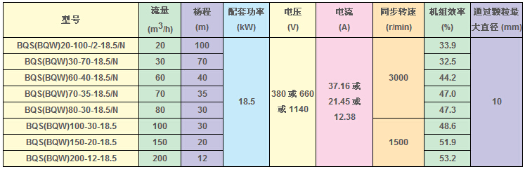 BQS(W)15KW的礦用隔爆型排污排沙潛水電泵技術參數: