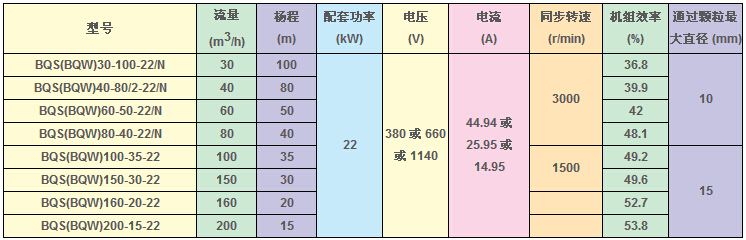BQS(W)礦用隔爆型排污排沙潛水電泵技術參數: