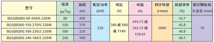 BQS(W)礦用隔爆型排污排沙潛水電泵技術參數:
