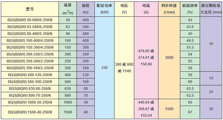 BQS(W)礦用隔爆型排污排沙潛水電泵技術參數: