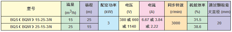 BQS(W)2.2KW的礦用隔爆型排污排沙潛水電泵技術參數: