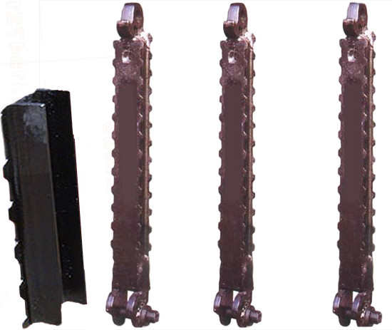 雙楔頂梁是一種鉸接式的頂梁,它可與各種類型單體金屬支柱配合組成金屬支架,供煤礦在水平及緩傾斜回采工作面支護的一種高強度頂梁。雙楔頂梁由于這種頂梁能懸臂支護工作面煤壁前邊的運輸機道上面的頂板,使煤壁與支柱間有較大的無支護空間。故為采用新型采煤機械和可彎曲運輸機,實現采煤一般機械化提供了條件,是高檔普采和新高檔采技術必要配套設備.